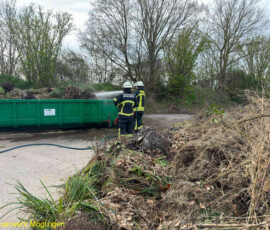 Vor Ort brannte Häckselgut in einer Absetzmulde. Das Kleinfeuer wurde mit einem C-Rohr abgelöscht und mittels Wärmebildkamera abschließend kontrolliert.