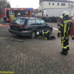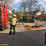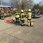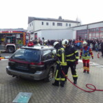 Bei der praktischen Abschlussübung galt es bei zwei Einsatzszenarien, einem Verkehrsunfall mit PKW und einem Wohnungsbrand mit Menschenrettung, das erlernte Wissen unter Beweis zu stellen. Bei dem Verkehrsunfall galt es zum Beispiel eine fachgerechte Sicherung eines Unfall-PKW herzustellen und die anschließende Rettung von Insassen mit hydraulischem Rettungsgerät durchzuführen. Beim Brandeinsatz wurde ein dreiteiliger Löschangriff mit einer Personenrettung über tragbare Leitern durchgeführt.