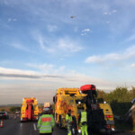 Die Feuerwehr unterstützte den Rettungsdienst bei der Versorgung der Verletzten und rettete einen Fahrer aus seinem Führerhaus. Anschließend wurden die Ladungen der LKWs nach Gefahrgut untersucht und teilentladen. Aufgrund der Schwere des Unfalls gestaltete sich die Bergung der LKWs recht schwierig und erfolgte daher mittels Autokran, so dass zwei der Fahrspuren auf längere Zeit gesperrt werden mussten.