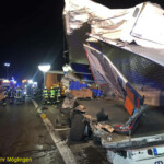 Schwerer Verkehrsunfall auf der Bundesautobahn A81 mit 2 LKW und 1 PKW