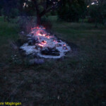 Die Feuerwehr löschte den brennenden Holzhaufen mit 1 C-Rohr ab und kontrollierte die Brandstelle mit der Wärmebildkamera.