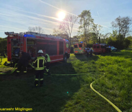 Beim Eintreffen an der Einsatzstelle brannte ein Gartenhaus im Vollbrand und der Brand breitete sich bereits auf die angrenzende Vegetation aus. Umgehend wurde der Brand durch zwei Trupps unter Atemschutz mit zwei C-Rohren abgelöscht.