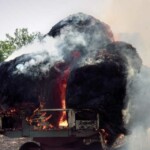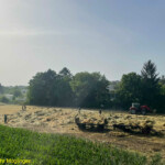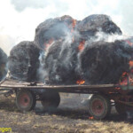 Auf einem Acker neben dem Schützenhaus standen zwei mit Rundballen beladene Hänger im Vollbrand. Durch uns wurde umgehend die Brandbekämpfung mit einem C-Rohr durch einen Trupp unter schwerem Atemschutz eingeleitet und parallel hierzu eine Wasserversorgung vom Wohngebiet zur Einsatzstelle aufgebaut. Im weiteren Einsatzverlauf waren mehrere C-Rohre und ein B-Rohr im Einsatz. Um den Brand vollständig zu löschen, wurden die Rundballen mittels Frontlader auseinandergezogen und auf dem Feld verteilt.