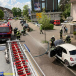 An der Einsatzstelle stand ein PKW im Vollbrand. Umgehend wurde der brennende PKW mittels Schnellangriff-Wasser durch einen Trupp unter schwerem Atemschutz abgelöscht.
