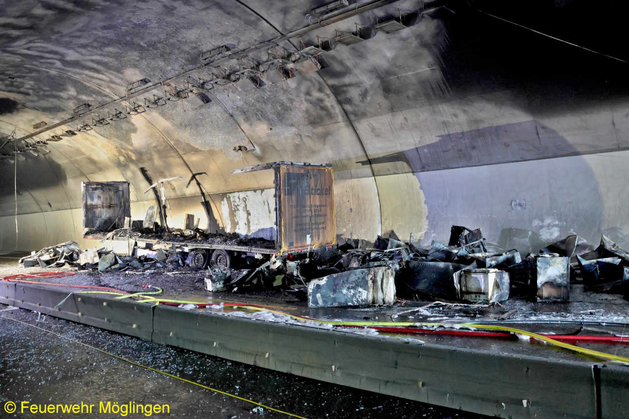 Nachdem gegen 14:20 Uhr ein LKW-Anhänger im Engelbergtunnel in Fahrtrichtung Stuttgart in Brand geraten war, konnte das Feuer zwischenzeitlich gelöscht werden. Die Einsatzmaßnahmen vor Ort dauern noch auf unbestimmte Zeit an.