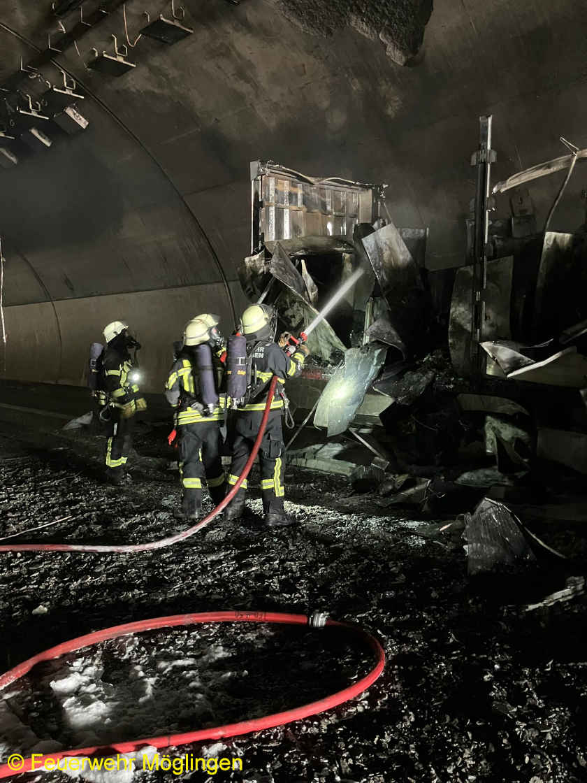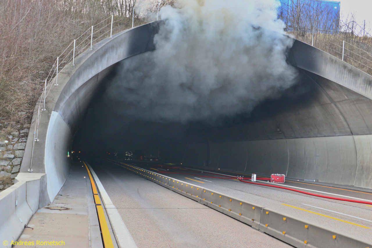 Nach derzeitigen Erkenntnissen ist gegen 14.20 Uhr am Dienstag (03.03.2026) aus noch ungeklärter Ursache ein LKW-Anhänger im Engelbergtunnel in Brand geraten. Die Feuerwehr hat mit den Löscharbeiten begonnen und die Flammen derzeit unter Kontrolle. Die Tunnelröhren werden momentan von der Feuerwehr gelüftet.