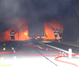 Am Mittwochabend wurden wir mit einem Hilfeleistungslöschfahrzeug zur Überlandhilfe nach Gerlingen, zum Tunnelportal des Engelbergtunnels alarmiert. Im Engelbergtunnel war es zu einem LKW-Brand gekommen. Wir unterstützen bei den Löscharbeiten