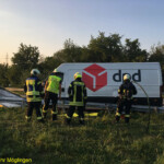 Die Feuerwehr sicherte die Einsatzstelle gegen den fließenden Verkehr ab und stellte den Brandschutz sicher. Die ausgelaufenen Betriebsstoffe wurden gebunden und aufgenommen.