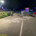 An der Einmündung der Kreisstraße 1661 zur Landesstraße 1140 höhe Möglingen war es auf Grund von Vorfahrtsmissachtung zu einem Verkehrsunfall mit einem PKW und einem Motorrad gekommen. Ein 58-jähriger PKW-Fahrer befuhr die Kreisstraße 1661 von Möglingen kommend in Richtung der Landesstraße 1140. An der Einmündung auf die Landesstraße wollte der PKW-Fahrer nach links in Richtung Ludwigsburg abbiegen und missachtete dabei die Vorfahrt eines von Ludwigsburg ordnungsgemäß kommenden 29-jährigen Motorradfahrers. Bei dem Unfall wurden der Motorradfahrer schwer und der PKW-Fahrer leicht verletzt. Die Feuerwehr unterstützte den Rettungsdienst, sicherte die Einsatzstelle gegen den fließenden Verkehr ab, nahm auslaufende Betriebsstoffe auf und leuchtete die Einsatzstelle aus.
