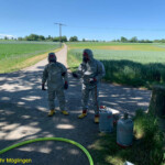 Die Feuerwehr sperrte den Bereich weiträumig ab und entfernte den Befall mithilfe von Gasbrenner und Schutzanzügen. Die Feuerwehr war mit 2 Fahrzeugen im Einsatz.