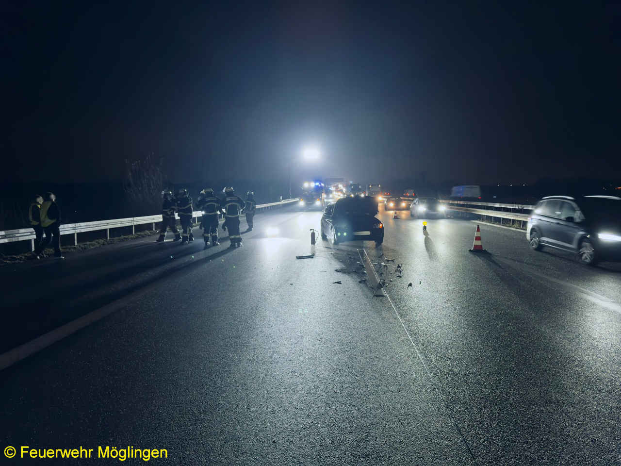 Zwischen den Anschlussstellen Ludwigsburg-Süd und Stuttgart-Zuffenhausen war es zu einem Verkehrsunfall mit zwei beteiligten PKW gekommen. Die Einsatzstelle wurde gegen den fließenden Verkehr abgesichert und auslaufende Betriebsstoffe abgebunden.