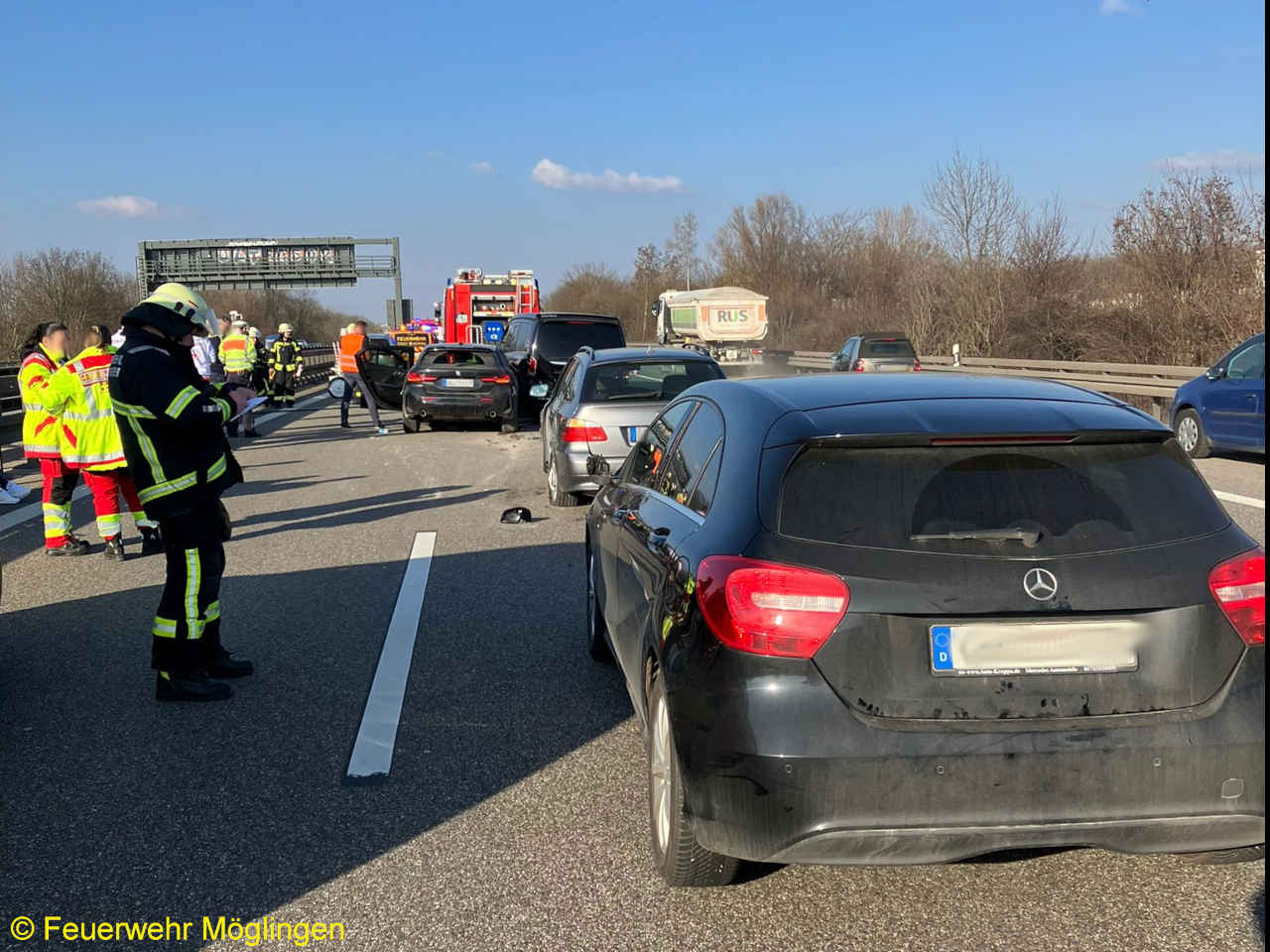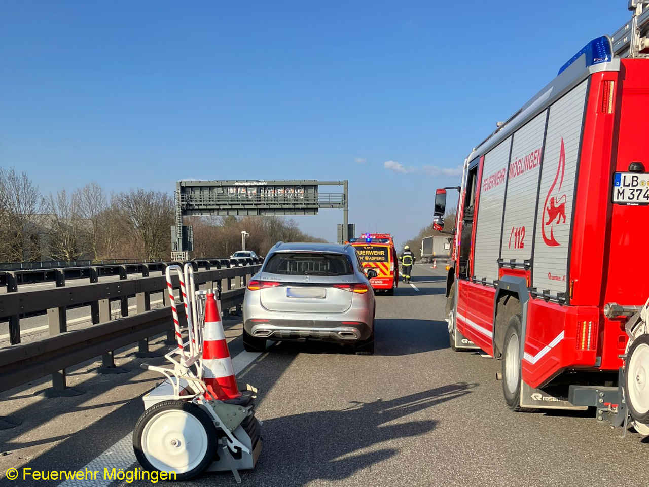 Am Mittwochmittag wurden wir gemeinsam mit der Feuerwehr Asperg auf die Bundesautobahn A81, Ludwigsburg-Süd Fahrtrichtung Heilbronn, zu einem Verkehrsunfall mit vier beteiligten PKW alarmiert.