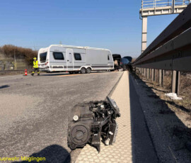 Zwischen der Anschlussstelle Ludwigsburg-Nord und Ludwigsburg-Süd war es zu einem Verkehrsunfall mit einem LKW und einem Wohnwagengespann gekommen. Bei dem Unfall wurde eine Person verletzt und musste durch den Rettungsdienst versorgt werden.