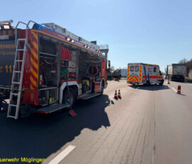 Die Einsatzstelle wurde gegen den fließenden Verkehr abgesichert, ausgelaufene Betriebsstoffe gebunden und der Brandschutz sichergestellt.