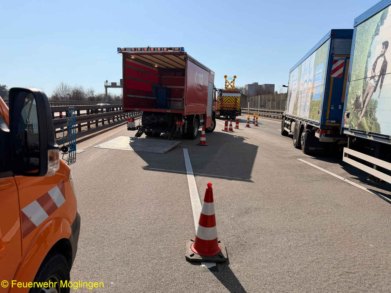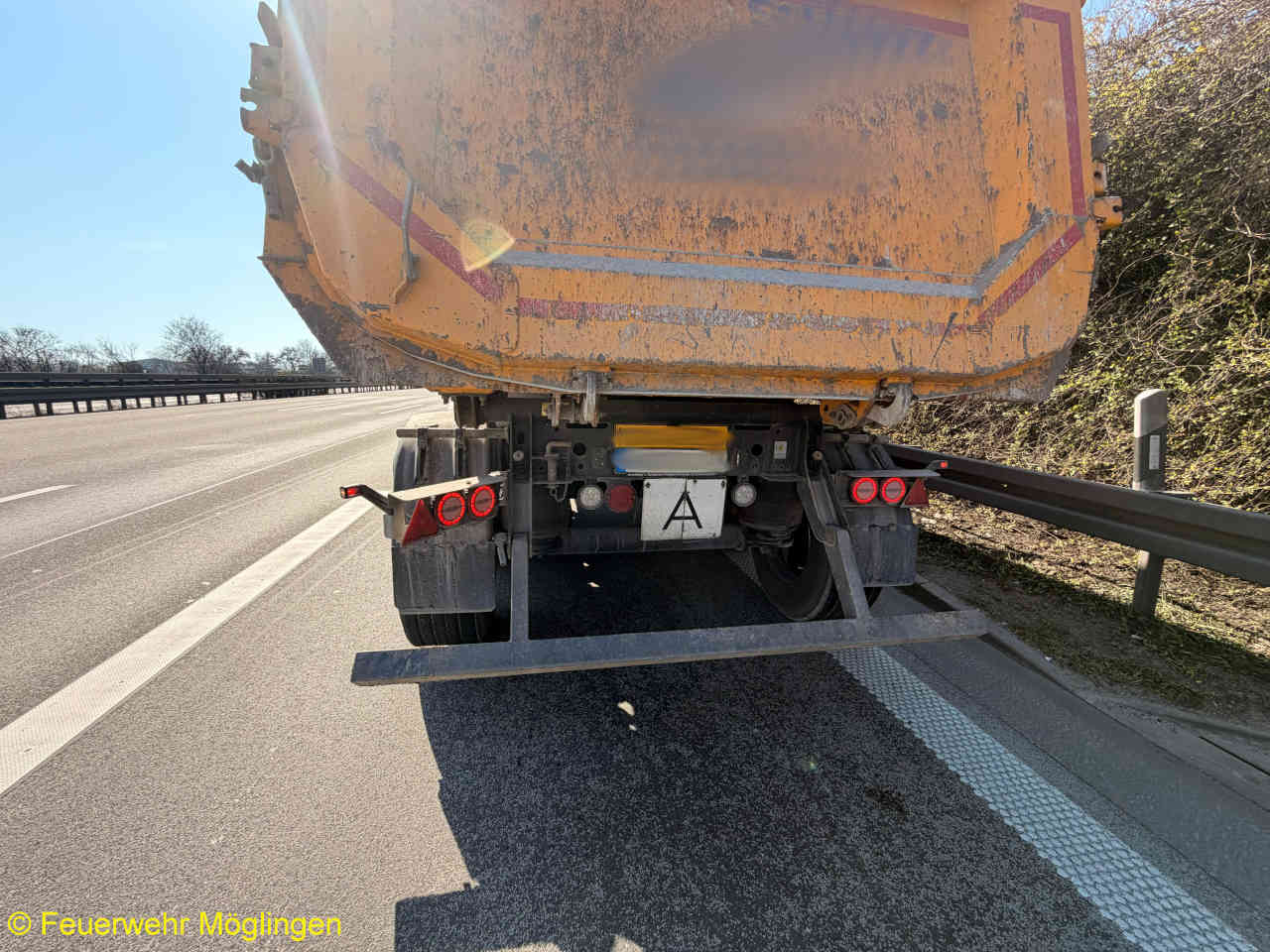 Die Einsatzstelle wurde gegen den fließenden Verkehr abgesichert, ausgelaufene Betriebsstoffe gebunden und der Brandschutz sichergestellt.