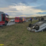 Ein 54-jähriger VW-Polo-Fahrer war von Stuttgart-Stammheim in Richtung Möglingen unterwegs als im durch ein entgegenkommenden Lastwagen Spritzwasser auf seine Windschutzscheibe spritzte. Der VW-Polo-Fahrer lenkte zu weit nach rechts und geriet in den Grünstreifen. Beim Versuch sein Fahrzeug abzufangen, übersteuerte dieser und kam nach links von der Fahrbahn ab. Hier überschlug sich der VW Polo und kam auf dem Dach im angrenzenden Acker zum Liegen. Der Fahrer sowie seine 21 und 16 Jahre alten Beifahrerinnen konnten eigenständig aus dem Fahrzeug klettern. Bei dem Unfall wurde die 16-jährige Beifahrerin leicht verletzt.