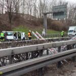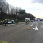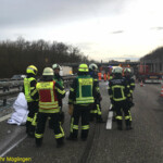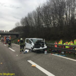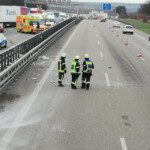 Auf der Anfahrt zur Unfallstelle stellten die anfahrenden Kräfte der Feuerwehr Möglingen fest, dass sich Trümmerteile und verschiedenste Baustoffe bis auf die Gegenfahrbahn Richtung Heilbronn verteilt hatten und blieben dort mit ihren Fahrzeugen stehen. Umgehend gingen mehrere Trupps über die Leitplanke, auf die Fahrbahn Fahrtrichtung Leonberg, zur Unterstützung des Rettungsdienstes zur Unfallstelle vor. Eines der beteiligten Fahrzeuge, ein Handwerkerfahrzeug, hatte in Folge des Unfalles ein Teil seiner Ladung, darunter Bauschaum, verloren. Die Materialien hatten sich über alle Fahrspuren verteilt, klebten auf der Fahrbahn und mussten von den Einsatzkräften entfernt werden.