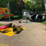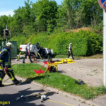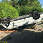 Nur wenige Stunden nach dem letzten Einsatz wurde die Feuerwehr Möglingen erneut in die Hohenzollernstraße alarmiert. In Höhe der Einmündung Hohenzollernstraße/Hohenstaufenstraße war es um 16:05 Uhr zu einem Verkehrsunfall mit einem Fahrzeug gekommen. Ein 86-jähriger Fahrer eines Mercedes-Benz war aufgrund von gesundheitlichen Problemen nach rechts von der Fahrbahn abgekommen und überfuhr den Mast einer dort installierten Fußgängerampel. Anschließend wurde das Fahrzeug weiter in Richtung einer Lärmschutzböschung geleitet, rutschte dort die Böschung wieder herunter und blieb auf dem Dach liegen.