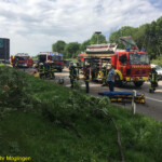 Die Feuerwehr musste den schwer verletzten Fahrer mit hydraulischem Rettungsgerät aus dem stark deformierten Führerhaus befreien. Anschließend wurden er und die Fahrerin des PKW in ein Krankenhaus gebracht. Während der Rettungsarbeiten stellte die Feuerwehr den Brandschutz sicher und sicherte die Unfallstelle gegen den fließenden Verehr ab. Für die Unfallaufnahme und die Bergungsarbeiten musste der rechte und mittlere Fahrstreifen bis ca. 16:00 Uhr gesperrt werden.