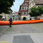 Nach dem wir vom Einsatz in Freiberg zurück waren und dort unser „Beaver“ Schutzsystem nicht vollständig benötigt wurde, wurden wir mit dem restlichen System nach Steinheim gerufen, hier drohte die Murr über das Ufer zu treten.
