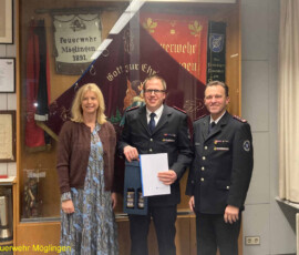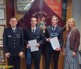Zehn Feuerwehrmitglieder wurden in diesem Rahmen befördert, vier Ehrenabzeichen der Gemeinde Möglingen und fünf Ehrenzeichen des Landes Baden-Württembergs wurden verliehen.