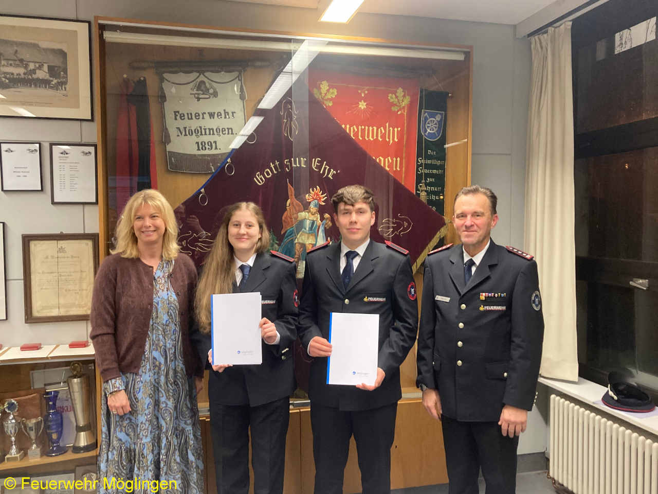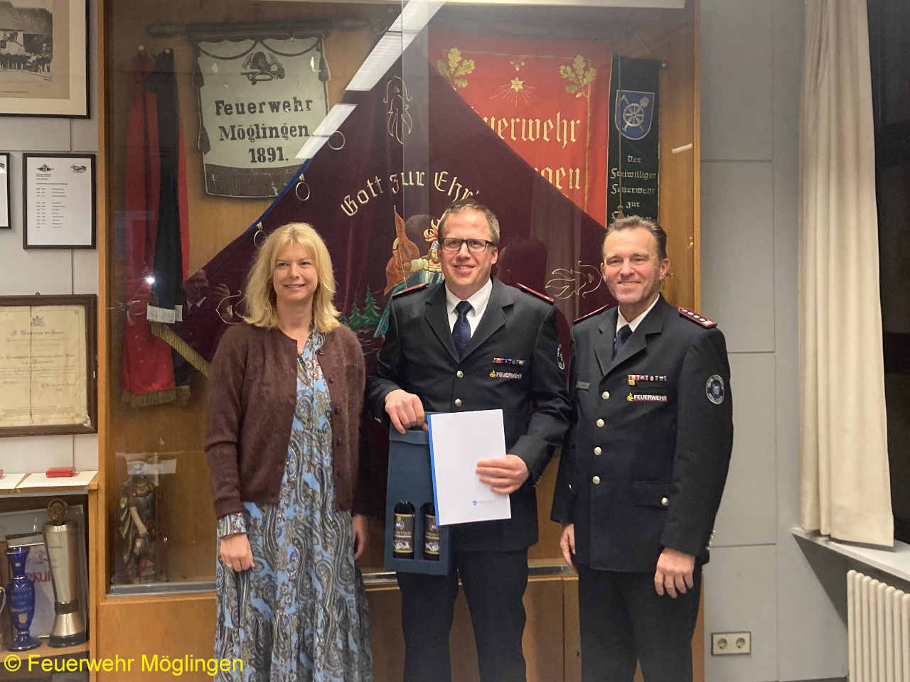 In einem Grußwort informierte Bürgermeisterin Frau Saile über den aktuellen Stand des Projekts „Neues Feuerwehrgerätehaus“, die laufende Beschaffung des neuen Einsatzleitwagens ELW1 sowie die Ausstattung der Feuerwehr mit digitalem Einsatzstellenfunk. Sie dankte allen Feuerwehrangehörigen für ihren unermüdlichen ehrenamtlichen Einsatz zum Wohle der Möglinger Bürgerinnen und Bürger und würdigte ihren Mut, sich dabei oftmals auch unter Zurückstellung der eigenen Gesundheit für die Allgemeinheit einzusetzen.