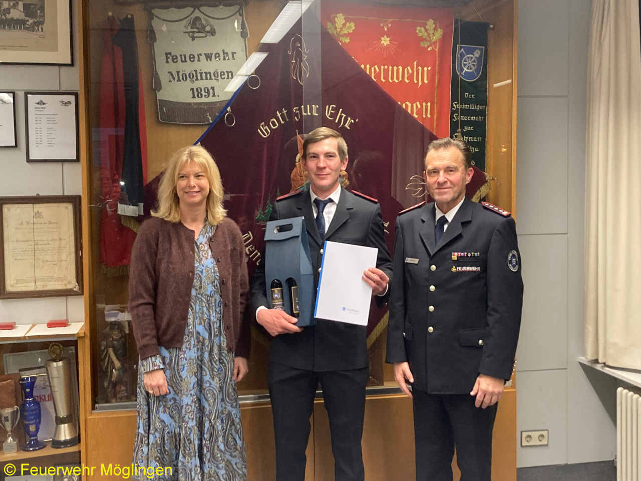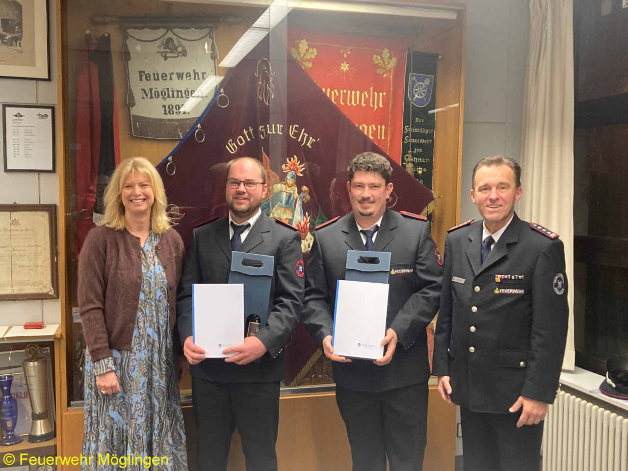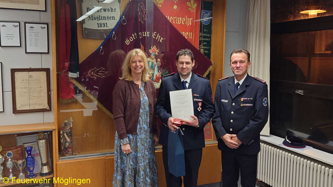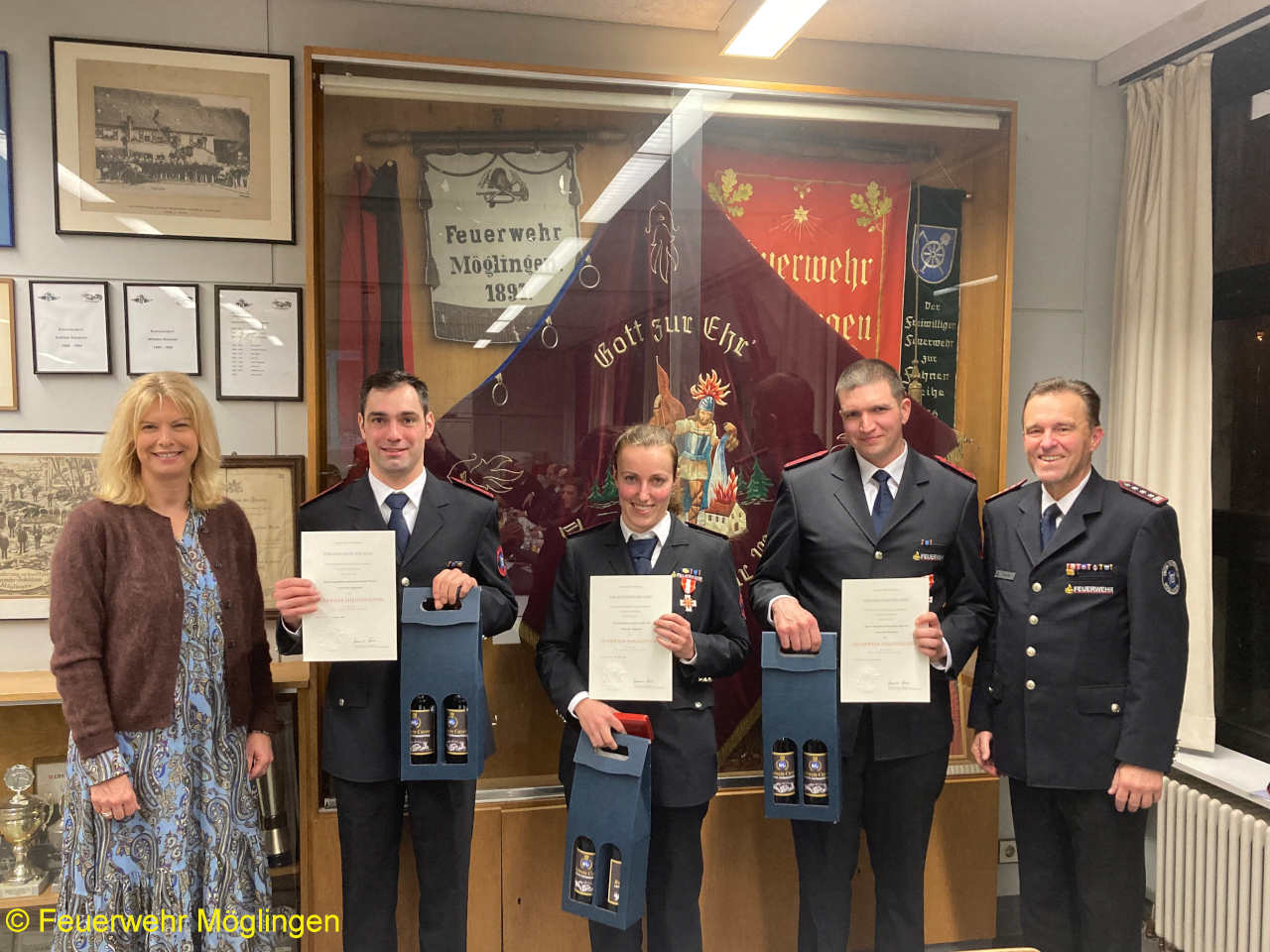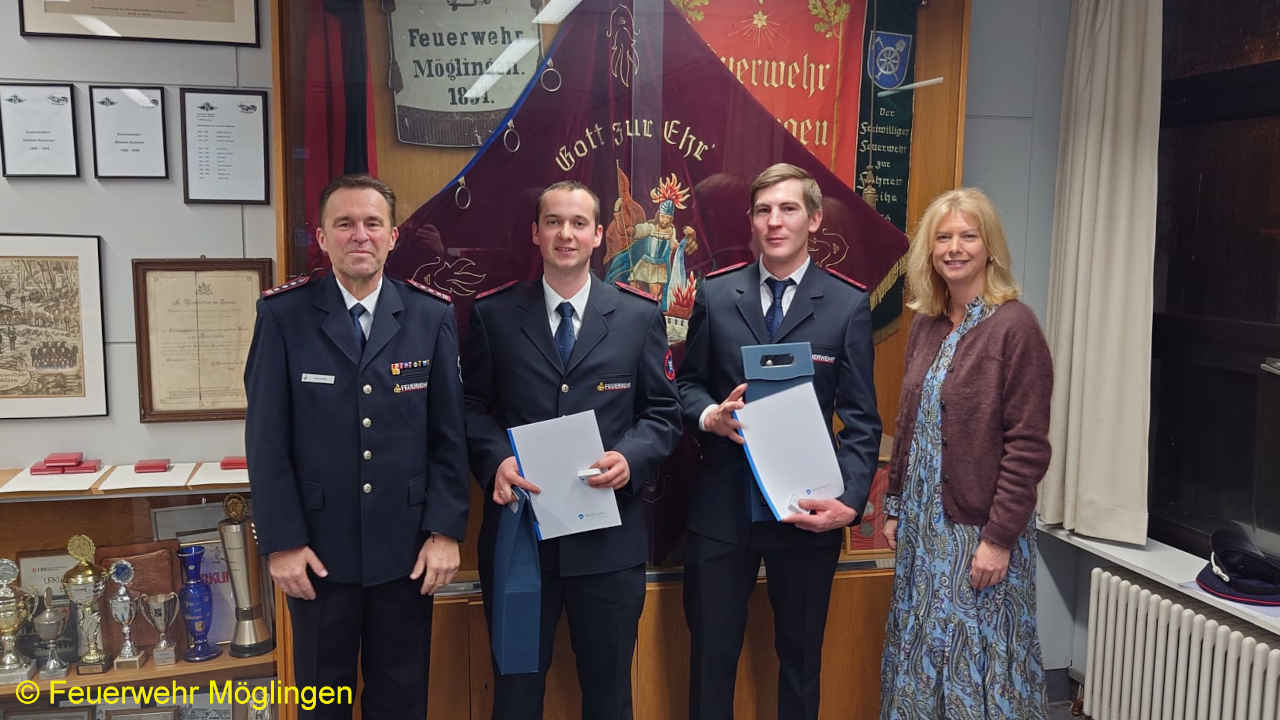 Zehn Feuerwehrmitglieder wurden in diesem Rahmen befördert, vier Ehrenabzeichen der Gemeinde Möglingen und fünf Ehrenzeichen des Landes Baden-Württembergs wurden verliehen.